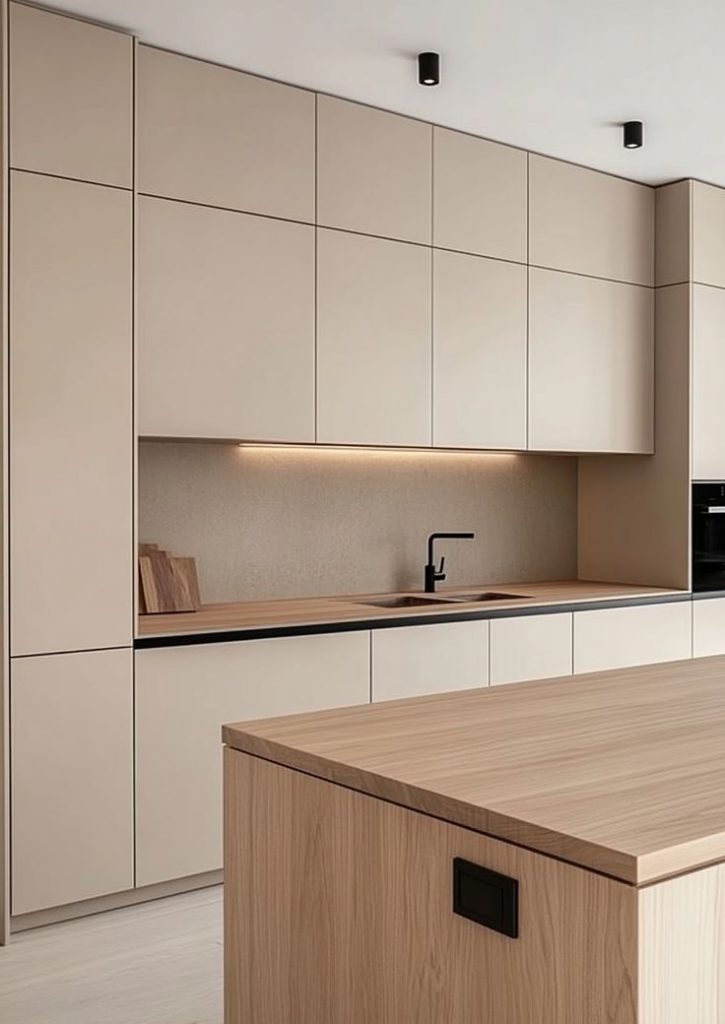 Discover the beauty of simplicity with soft beige tones, light wood textures, and elegant minimalism — a warm and timeless kitchen design inspiration.